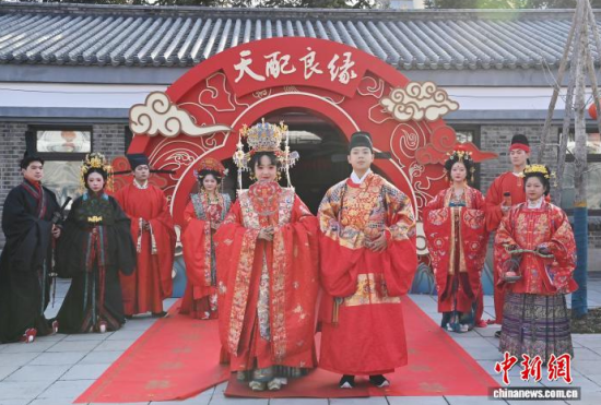 11月7日,偽滿皇宮博物院主辦的《天配良緣——近現(xiàn)代婚戀婚俗實(shí)物展》于長(zhǎng)春開(kāi)幕。展覽通過(guò)婚書(shū)、嫁妝等300余件民間實(shí)物,帶領(lǐng)參觀者沉浸式感受不同年代的婚禮婚俗。現(xiàn)場(chǎng)通過(guò)漢服走秀、嗩吶演奏等演出,展現(xiàn)傳統(tǒng)婚儀魅力。中新社記者 張瑤 攝