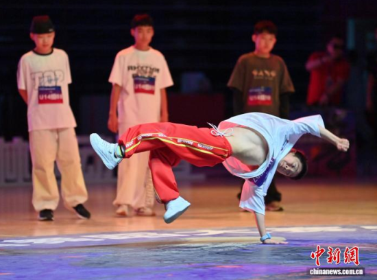 9月6日,吉林長(zhǎng)春,舞者在U14組比賽中。當(dāng)天,2025中國(guó)·吉林省體育舞蹈公開賽暨街舞國(guó)際邀請(qǐng)賽在長(zhǎng)春開幕。來自中、韓等國(guó)家的千余名選手同臺(tái)競(jìng)技,賽事涵蓋霹靂舞、拉丁舞等多個(gè)項(xiàng)目。中新社記者 張瑤 攝