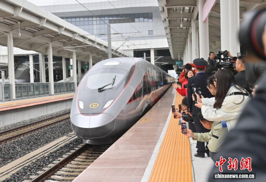 9月28日,G8166次列車從長白山站始發(fā),駛向終點站沈陽北站,沈白高鐵正式開通運營,結束了吉林省通化、白山兩市不通高鐵的歷史,北京朝陽站、沈陽北站至長白山站的最短旅行時間分別為4小時33分、1小時53分。作為中國東北高鐵網重要組成部分,該線路對暢通區(qū)域經濟循環(huán)、促進沿線旅游資源開發(fā)等具有重要作用。中新社記者 張瑤 攝