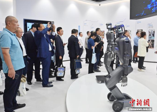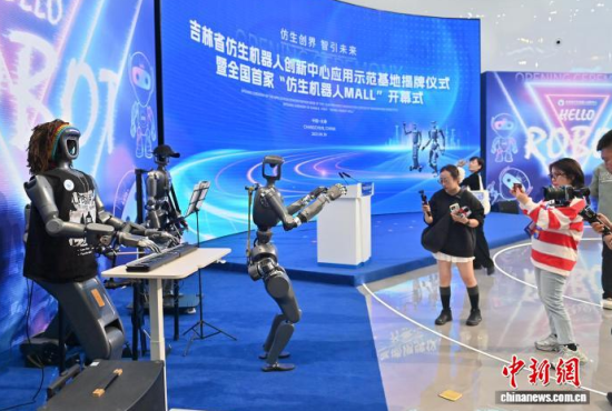 9月30日,吉林長春,參觀者觀看科技文旅機(jī)器人。當(dāng)天,吉林省仿生機(jī)器人創(chuàng)新中心應(yīng)用示范基地于吉林省長春市揭牌,全國首家“仿生機(jī)器人MALL”也在同期開幕。該基地集展示、體驗、科普、銷售等功能于一體,致力于打造沉浸式科技消費新地標(biāo)。中新社記者 張瑤 攝