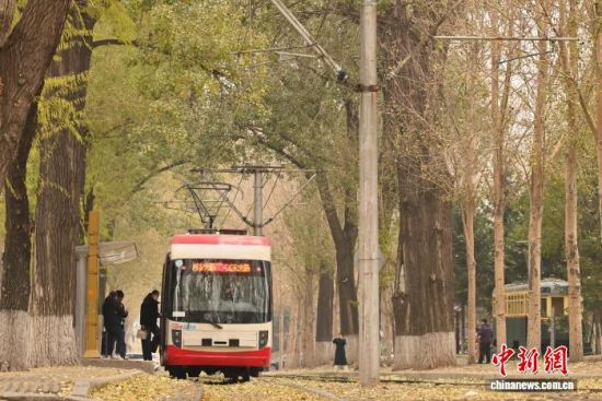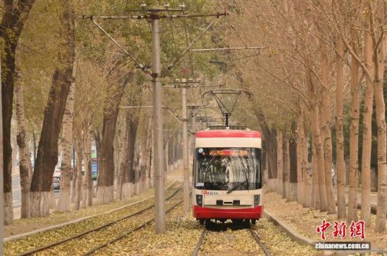 11月5日,吉林長(zhǎng)春秋意正濃,一處軌道兩旁的樹(shù)葉泛黃,有軌電車宛如在畫(huà)中穿行。中新社記者 張瑤 攝